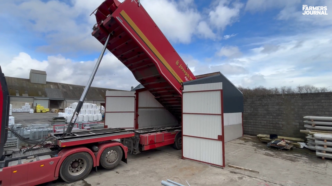 Agri OpenRoofs compact meal store allows a full arctic lorry to tip meal with ease due to its folding roof section